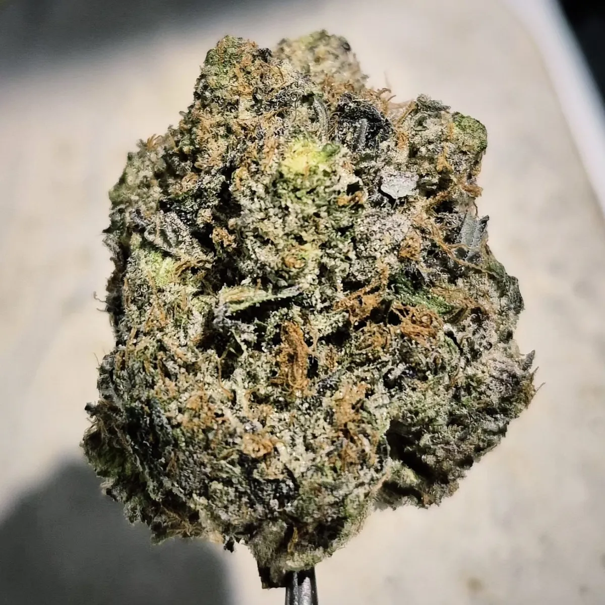 Nugs came dense and frosty with crazy orange pistil coverage. Good cure, not dry, broke apart nicely in the grinder. Bag appeal was definitely there. The nose on this is gassy upfront with this sweet creamy guava thing underneath. Smells like fuel and fruit had a baby. Translates well to the smoke too. Effects hit cerebral first, focused and uplifted, then mellows into a nice body relaxation without full couch lock. Good for evenings when you still want to be functional. Potency was solid. Worthy of the quad rating imo. Would definitely grab again if I see it around.
