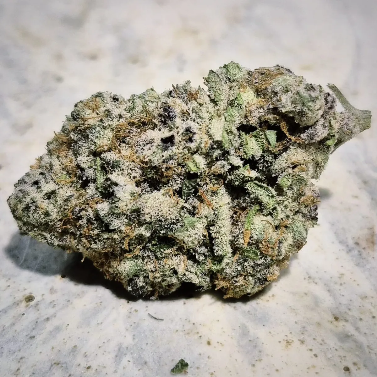 Strain - Ice Runtz smalls (Runtz x Ice Cream Cake) Texture - stunning appearances to these buds, smaller sized rounded grape shaped formations. Medium density to these fairly compact structures, with limited movement on the squeeze Scent/Profile - compiled of sweet exotic terpenes, pushing out a sweet skunky fruit aroma, followed by hints of creamy herbal citrus. Matching the notes of tropical fruit flavoring, sweetened herbal cream, and a light earthy citrus. More of a sweetened earthy herb on the release, lingering with a fruity citrus taste High/Effects - Ice Runtz combines the genetics of two sought-after flavorful strains resulting in an evenly balanced hybrid (50/50). The high slowly unveils a haze of relaxation over the mind, elevating you into a state of bliss with an uplift of euphoria. The focus begins shifting attention towards the body, providing a sense of relief, allowing you to unwind while placed being placed at ease. This tasty smoke has the capabilities of twisting up during all times of the day