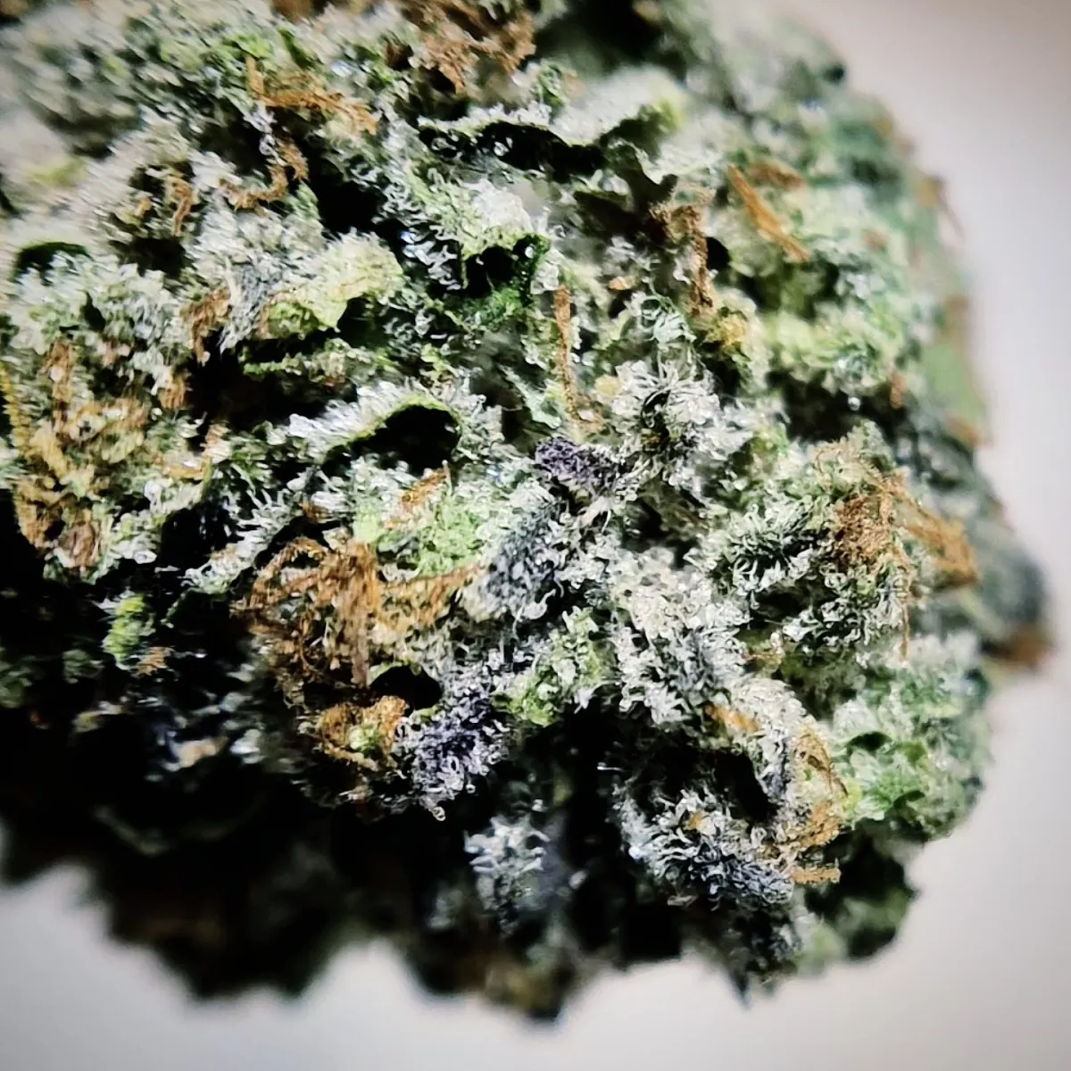 Strain - Ice Pie (Ice x Cherry Pie) Texture - dense medium sized structured buds, resembling oval grape shaped formations. Firm nugs that have a limited movement when squeezed, tightly wound together, cracked apart to a sticky interior Scent/Profile - an allure of loud pleasant aromas filled the nostrils, while amplifying the terpene profile once broken apart. Accented by overtones of rich creamy berries, accompanied by sweet gassy herbs. Taking in similar notes, smooth hits filled by sweetened fruity berries, pairing together with earthy herbs. Releasing off to more of a sweet herbal earthiness, leaving behind a fruity linger High/Effects - Ice Pie is a hybrid strain that's perfectly separated down the middle. Delivering an uplifting surge of blissful euphoria, eliminating any stress & anxiety, heightening focus, and socially engaged. A sense of relief is delivered through the body, experiencing a calming sensation that continues to build before residing to more relaxing effects. An effective flavorful strain that provides useful benefits during all times of the day